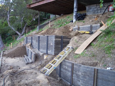These construction progress photos show innovative terracing methods. The ladder is where the staircase occurs in the second photo below.